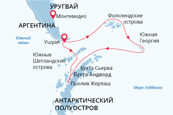 Здесь нас встречают уже другие пингвины, антарктические – Адели, чинстрап, генту. И другие ландшафты – огромные ледники и айсберги. С помощью наших экспедиционных лодок мы совершаем высадки на дикие берега, чтобы увидеть всё это вблизи.